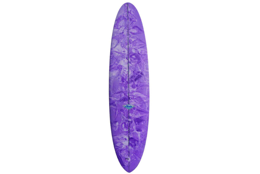 ティアドロップタイプのアウトラインはセンターではなくテイル寄りにトリムスポットを持っていくことで、テイルコントロールをしやすくした。ミッドレングス特有の前後の加重位置の距離を縮めることに成功。