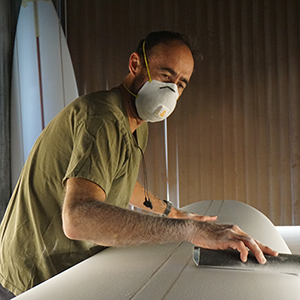彼のシェイプはとにかく緻密で正確。まじめな性格がシェイプににじみ出ている。Terry Martrin(テリー・マーティン)の生き写し的な面もあるかと思えば、独自の個性のシェイプもしっかりこなす。生粋の職人気質な彼に、シェイプを任せていて間違いない、という評価を各方面から得ている。とにかく彼のシェイプの安定感には定評がある。